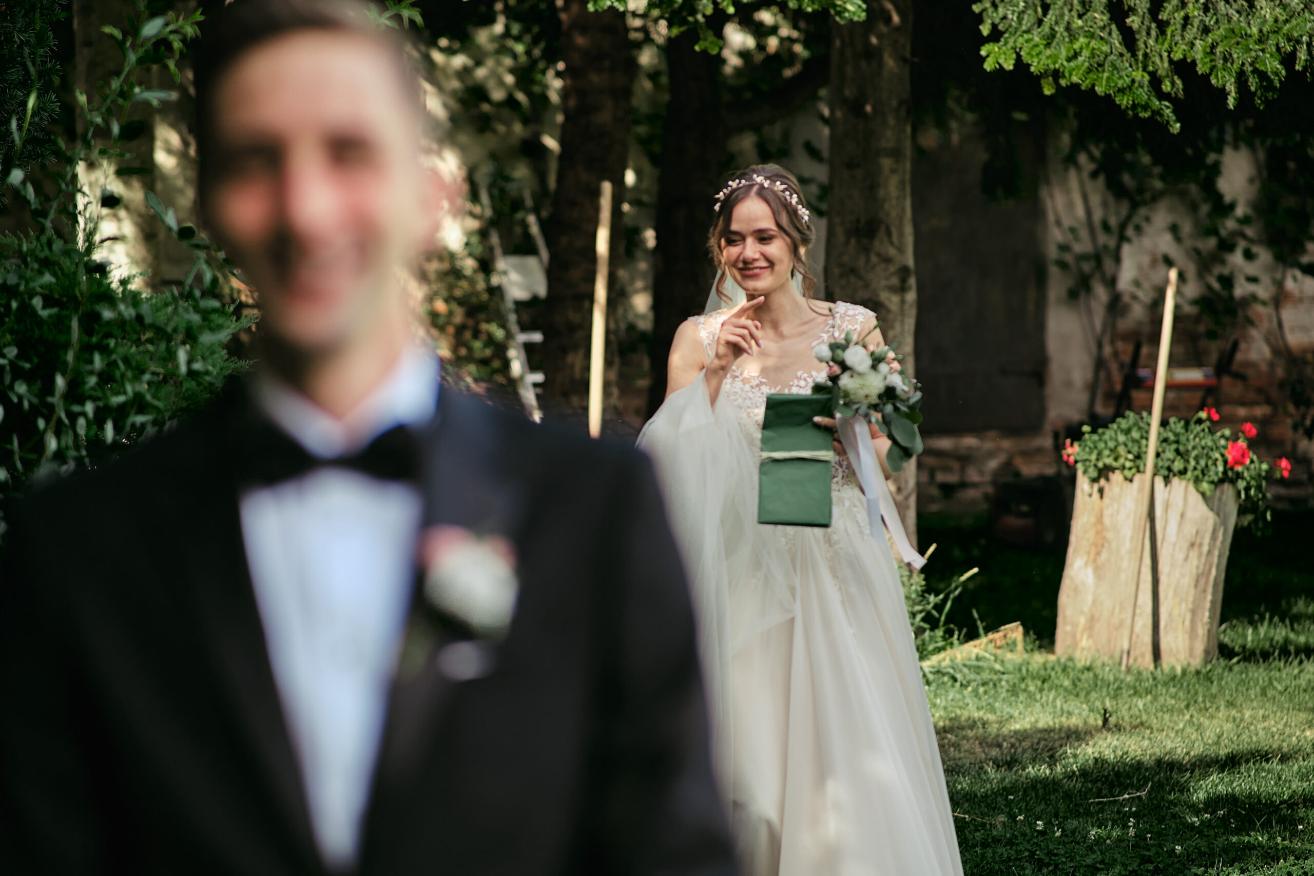 Coraz więcej Par decyduje się też na First Look – pierwsze spotkanie przyszłych małżonków tuż przed ceremonią. To cichy, naładowany emocjami moment, pełen intymności i wzruszenia. Czas tylko dla Was – kiedy możecie zobaczyć się po raz pierwszy w ślubnych strojach, z dala od zgiełku i spojrzeń gości. To chwila, która pozwala zatrzymać się na moment, odetchnąć i naprawdę poczuć, że w tym dniu Wasze nowe, wspólne życie właśnie się zaczyna.