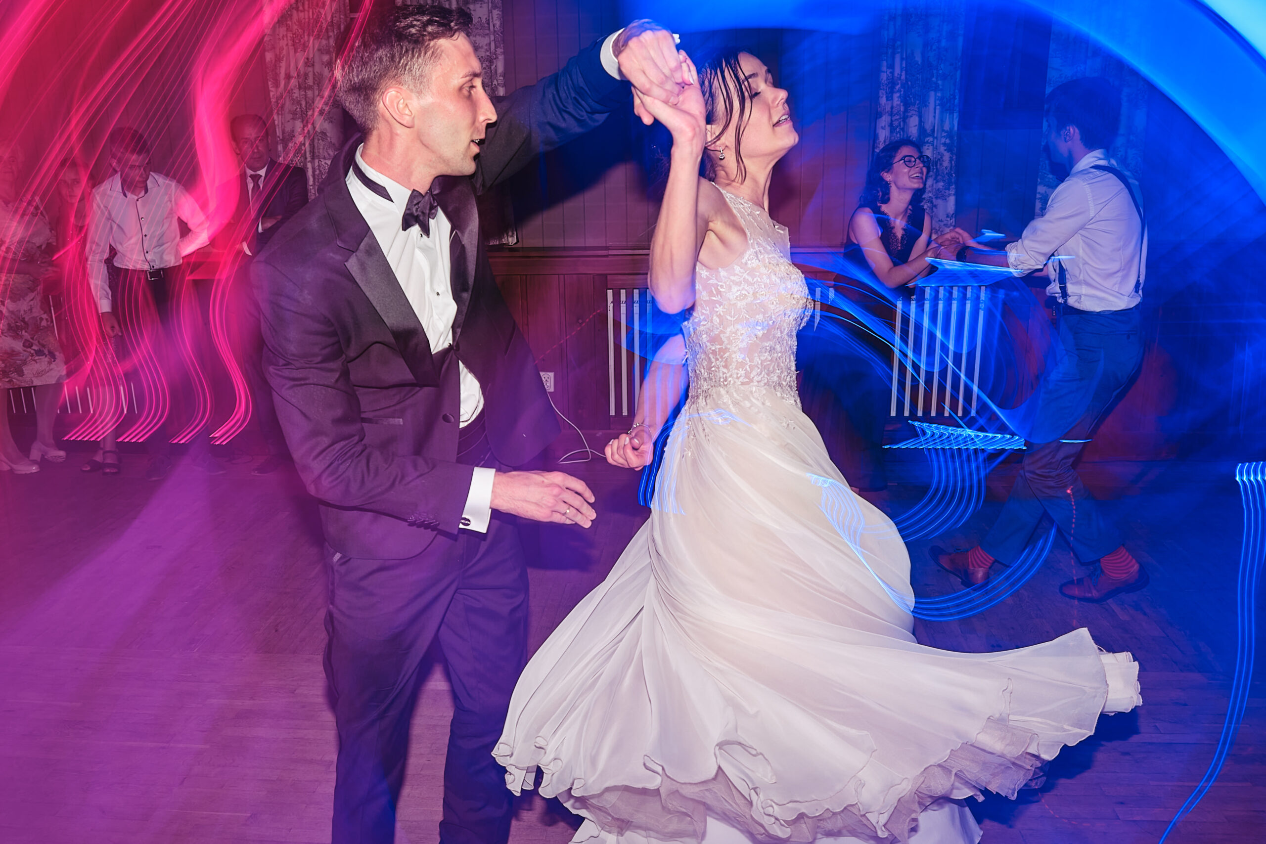 Po zaślubinach przychodzi czas świętowania! To przestrzeń pełna radości, śmiechu i tańca. Tu powstają najbardziej spontaniczne kadry – te, do których wracacie z uśmiechem po latach. Nie ingeruję w zabawę, ale czuwam, by uchwycić najpiękniejsze emocje: uścisk dziadków, pierwszy taniec, iskry świateł odbijające się w kieliszkach. Czasem warto też znaleźć chwilę wytchnienia – krótką sesję plenerową tuż po ceremonii. Kilka minut tylko dla Was, by zatrzymać ten dzień w ciszy, zanim wrócicie do wiru wydarzeń.